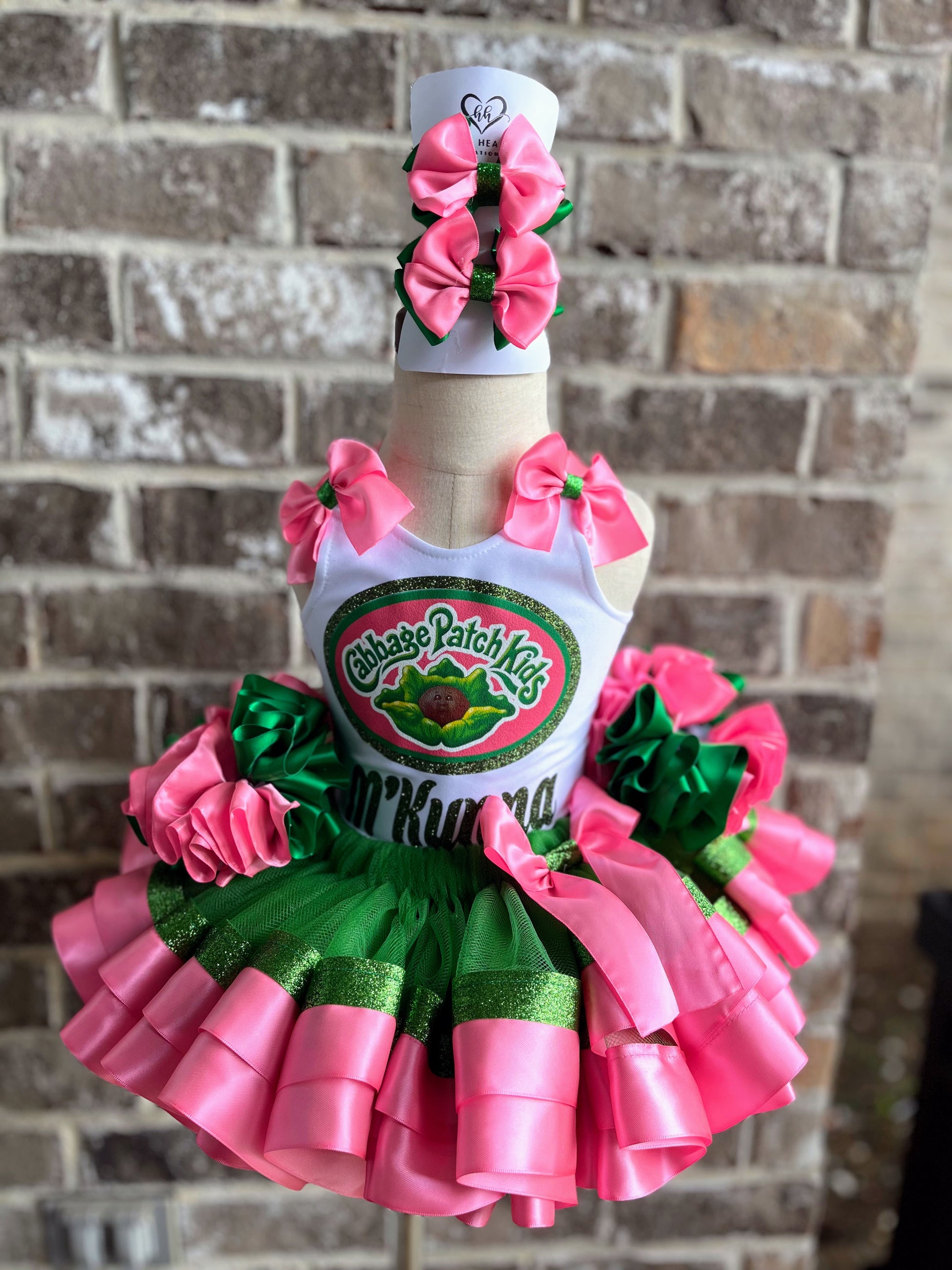 Delight your little one with this enchanting Cabbage Patch Tutu Set, featuring soft pink tulle layered with sparkling green glitter for a magical touch. Perfectly designed for twirling and play, this set includes charming bows and tutu anklets to complete the whimsical look. Ideal for dress-up, parties, or everyday fun, it brings a sprinkle of fairy-tale joy to any occasion.