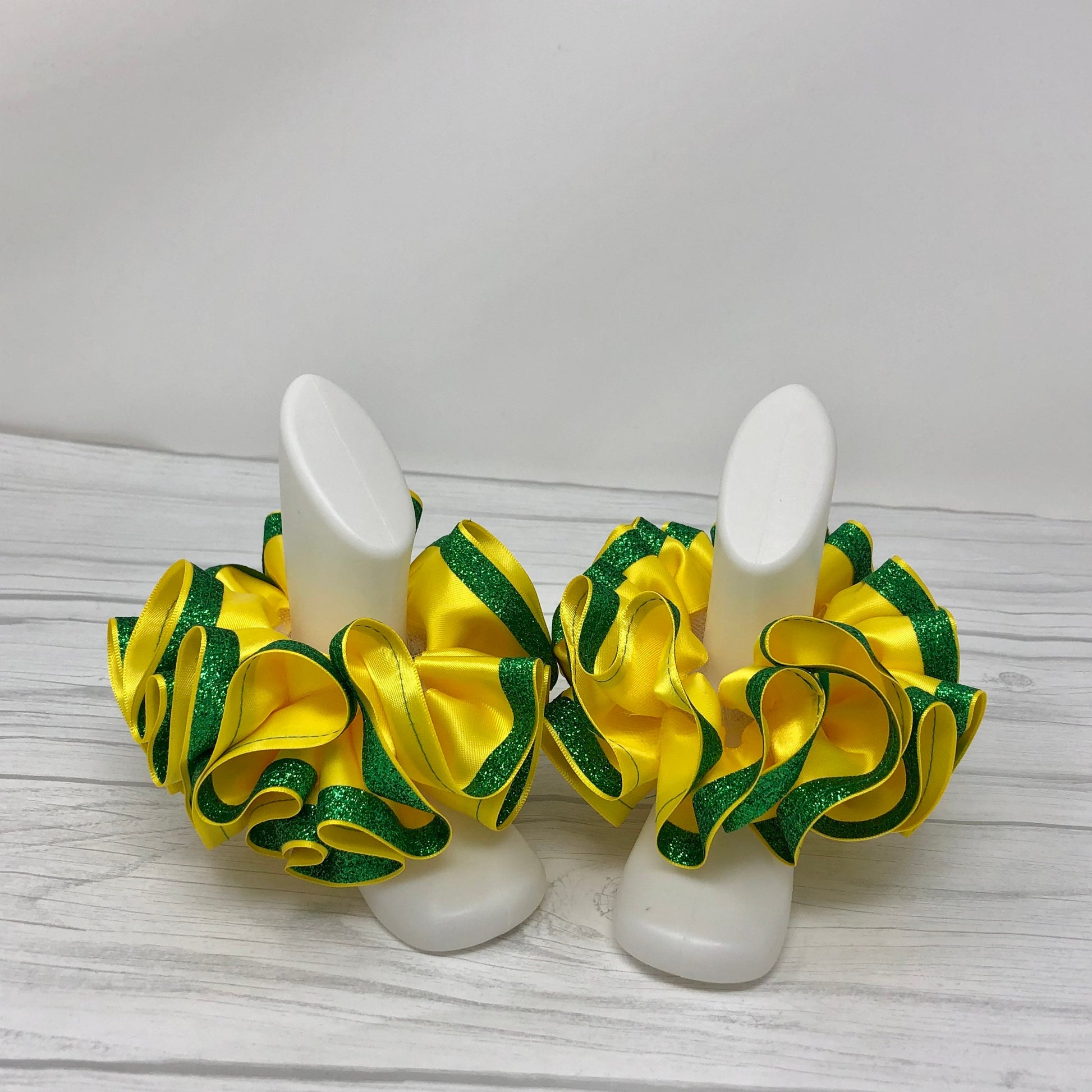 Effortlessly add a touch of whimsy to your outfit with these Yellow & Green Glitter Tutu Anklets. The vibrant yellow tutu design is accented with a sprinkle of sparkling green glitter, making these anklets a fun and playful addition to any ensemble.