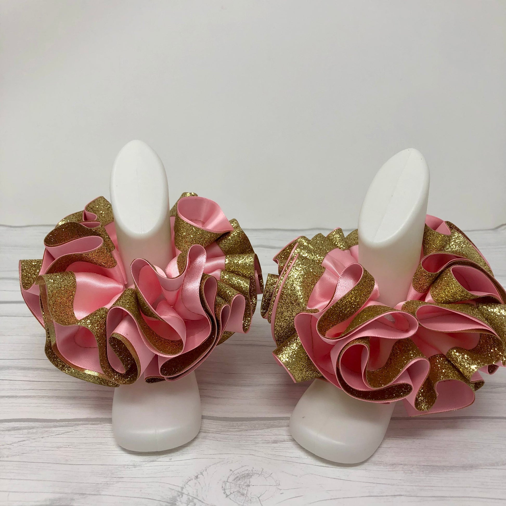 Add a touch of whimsy to your outfit with our Peach & Gold Tutu Anklets. The delicate light pink and gold glitter details are sure to add a playful and feminine touch to any look. Perfect for adding some flair to your dance or festival attire.